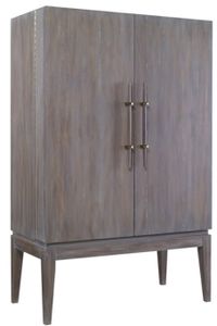 Raised on elegantly tapered legs, the two-door Socialite Bar Cabinet conceals classic bar storage and service details behind double-thick doors. Available with grasscloth as 1852-25 or this hardwood exterior and striking vertical pulls in your choice of antique brass or polished nickel. Drawer glides available in metal soft closing only. Also available as a Low Bar Cabinet 1851-23 or Low Bar Cabinet with Grass Cloth s 1851-25. Customization is possible.Read More