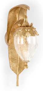 This Sconce features a gold leaf detail with a leaf design and etched glass.Read More