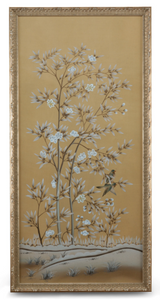 This Uccelli Panel features a watercolor on silk, antique silver frame with glass.Read More