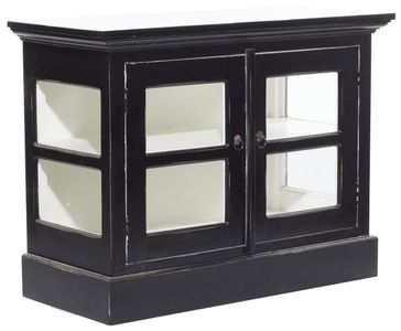 A practical yet stylish upgrade that instantly elevate the look of your room. Maintain a clutter free zone and stay organize with this chic cabinet. Such details make it a piece of accent faux furniture for displaying tabletop decorations, mini appliances, and framed pictures. This black rectangular accent furniture features 2 interior cabinets with 33.25”L x 14”W x 9.50”H and 32.25”L x 14”W x 9.37”H measurements. This item ships in 1 carton. Suitable for indoor use only. This item ships fully assembled in one piece.