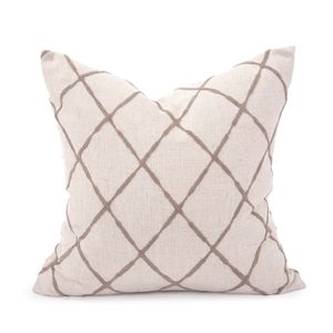 An oversized gray lattice design is woven into a natural base on our Lyric Pewter Pillow. The classic design lends itself to any design setting. Our Lyric Pewter pillow is part of our Davida Kay designer pillow collection. Includes a lush down filled pillow insert and invisible zipper closure. Also available in a 24" size.Read More