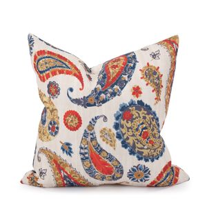 The Boteh Pillow is certain to add a fun pop of color to any decor. Bright and colorful paisley designs adorn a striaed background. Our Boteh Sand pillow is part of our Davida Kay designer pillow collection. Includes a lush down filled pillow insert and invisible zipper closure. Also available in a 20" size.Read More