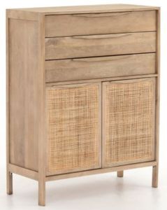 Featuring mango frames inset with woven cane, the Palmer tall dresser brings an abundance of organic texture to the bedroom. A trio of drawers and lower cabinet provide multiple storage options and its availability in a black wash offers further versatility.Read More
